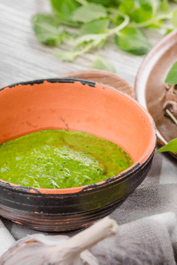 A tangy mint sauce made with jelly and vinegar, this sweet sour blend brings a fresh kick to lamb or smoked meats.